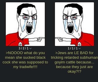 [7 / 3 / ?] 31KiB, 917x1027, 1613861798119.png View SameGoogleImgOpsiqdbSauceNAO Thread Reply Original Report Media View Same Google ImgOps iqdb SauceNAO Download Anonymous ID:5POyQB1r Tue 08 Feb 2022 16:10:58 No.14450676 View ViewReplyOriginalReport Quoted By: >>14450693 >NOOOO what do you mean she sucked black cock she was supposed to my tradwife!!!!