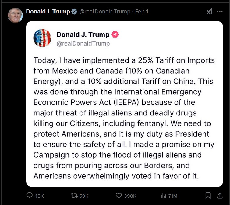 [401 / 131 / 1] 591KiB, 720x785, FullyCharged.png View SameGoogleImgOpsiqdbSauceNAO Thread Reply Original Report Media View Same Google ImgOps iqdb SauceNAO Download /smg/ Stock Market General TheBaggler_AKA_BigD !!2wgod7RQeJh ID:eHLsIxAB Mon 03 Feb 2025 14:48:49 No.22043394 View ViewReplyOriginalReport Quoted By: >>22043406 stock market discussion threadTariffs fully charged edition