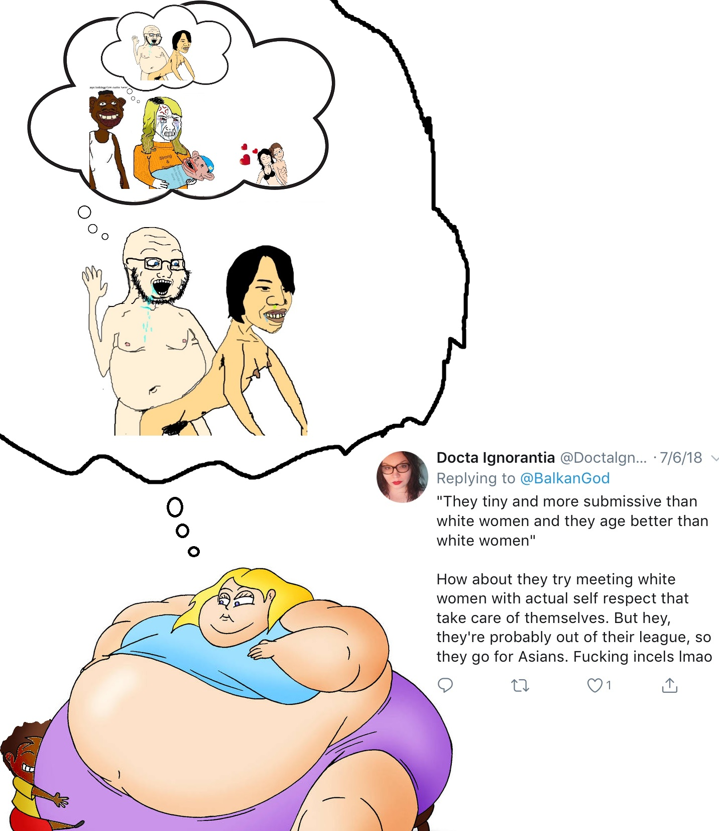 Why would it make sense to put a White Man above a Black Man when the White Man himself puts a Black Man above him? Arab/Middle Eastern girls figured out long ago to skip white men & go straight to blacks.