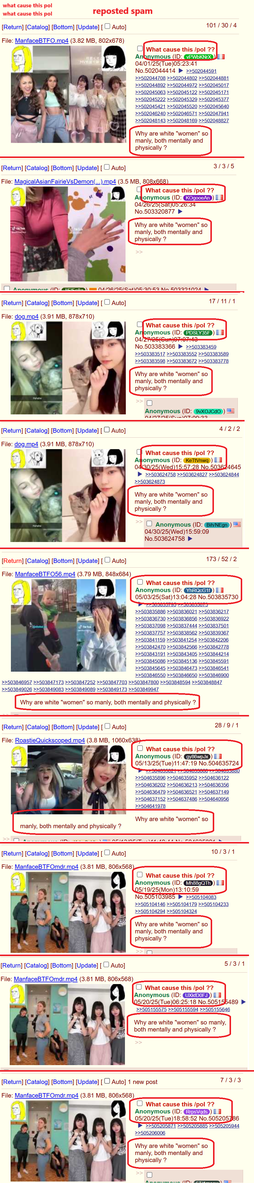 If a white "woman" acting cute, it just doesn’t work, like a man wearing a wig, its cringe,as their genetics predispose them otherwise. Their bodies were simply not designed for this role. Fundamentally, they resemble men with female reproductive organs. Even surgical alterations can do little to change the underlying biology, leaving them as little more than modified men. unironically, the phrase "YWNBAW" could just as easily apply to white "women", whose traits deviate significantly from the feminine ideal. I'm using white "women" as an example but it applies to all non Asian women. Why don't you see any difference between white "women" and trannies these days? Well you have your answer but deep down you always knew it.