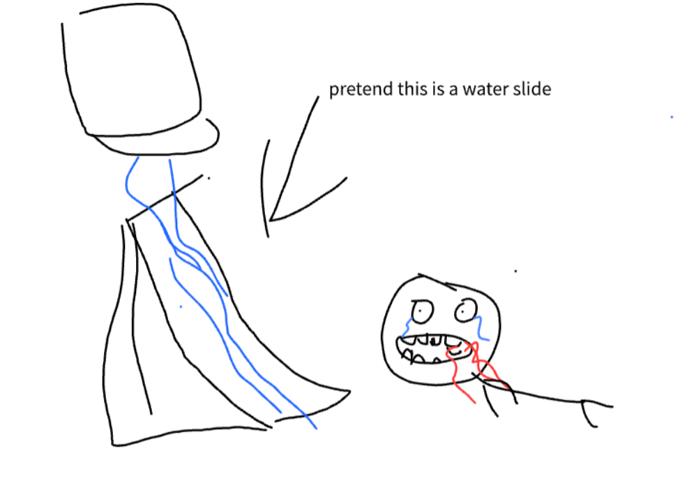 >bucket empties, slide gets wet, I fall