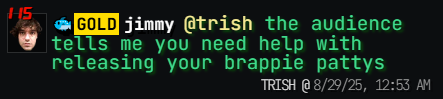 -- Trish is going to stream on the website soon