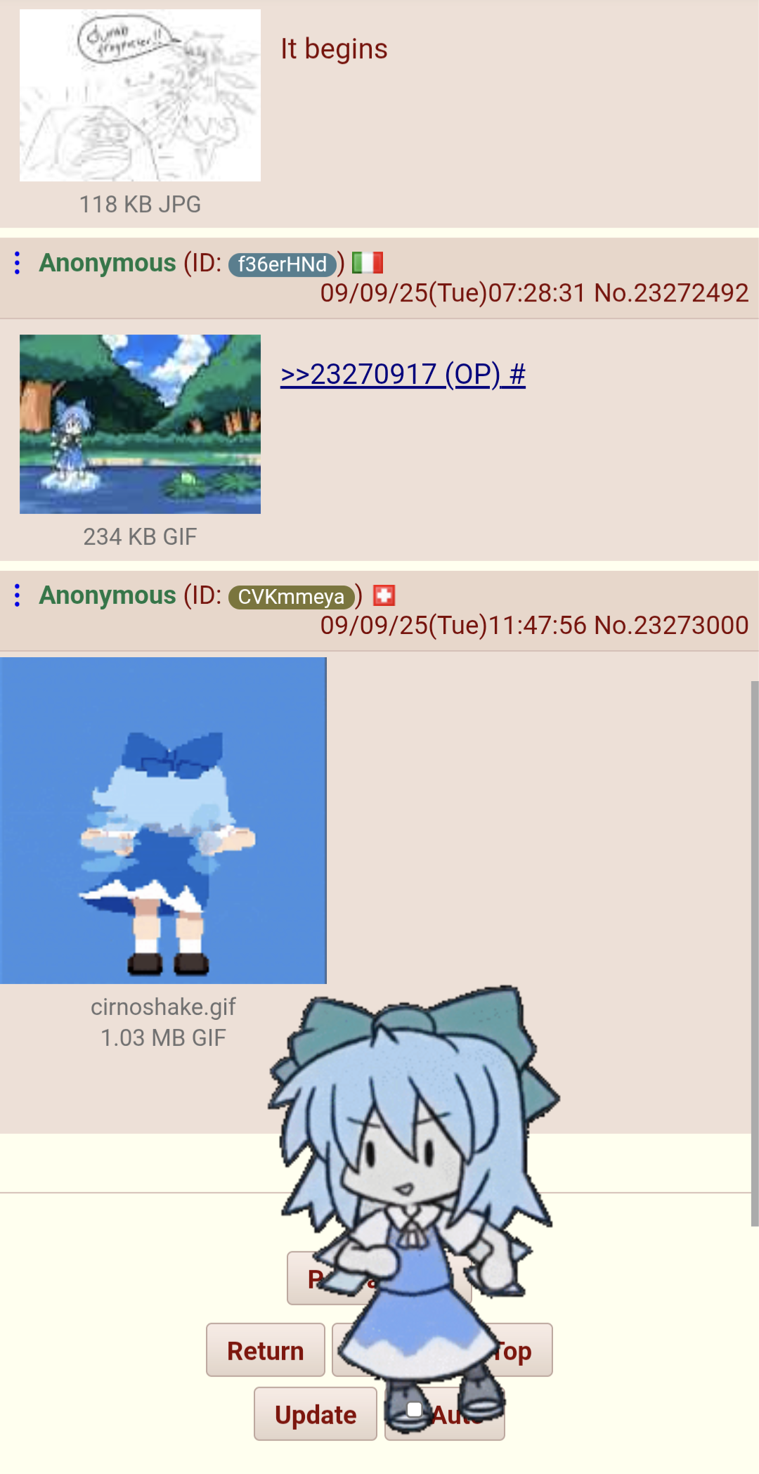 [9 / 7 / 1] 115KiB, 850x1202, __cirno_touhou_drawn_by_ahase_hino__sample-944d0cf260baf4b4dd775fda71486527.jpg View SameGoogleImgOpsiqdbSauceNAO Thread Reply Original Report Media View Same Google ImgOps iqdb SauceNAO Download -1 Frog Anonymous ID:SQEKx1ss Tue 09 Sep 2025 01:41:17 No.23270917 View ViewReplyOriginalReport Quoted By: >>23271076 >>23272492 >>23273386