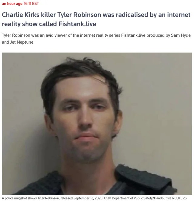 -- A video of "Fish" from streamstars is going VIRAL because twitter trannies think he lost his job for celebrating MURDER of Charlie Kirk https://x.com/Antunes1/status/1966513578883625060