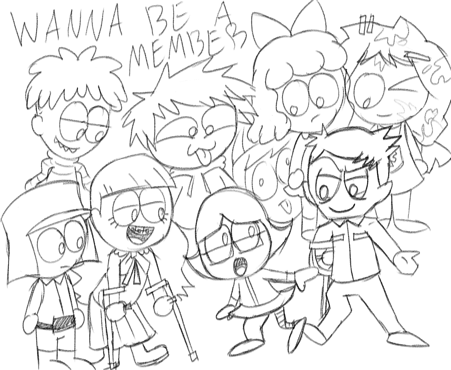 Here is a list off most of if not all the drawn characters so far. If you want a quick way to start drawing them, use a random number generator (www.calculator.net/random-number-generator.html) and have a go at drawing whatever characters you get. You can even do it multiple times if you want to draw more than one character together. Feel free to look through the Wiki or ask in the thread for more info on the characters, although not all the ones shown here have Wiki articles made yet, as it's a work in progress.