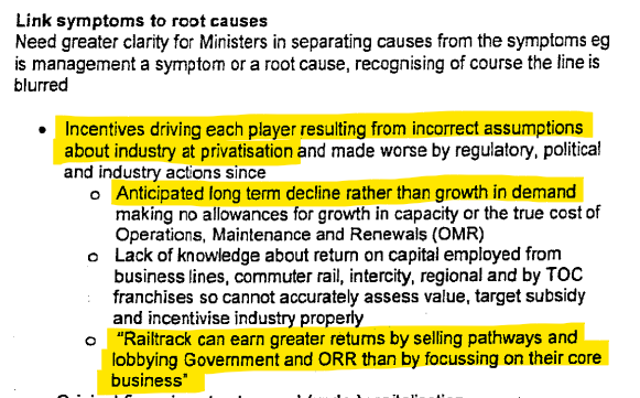 What were the exact reasons the privatization of british rail network as Railtrack plc failed so spectacularly in the UK that the british government decided to renationalise it as Network Rail?