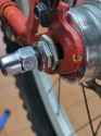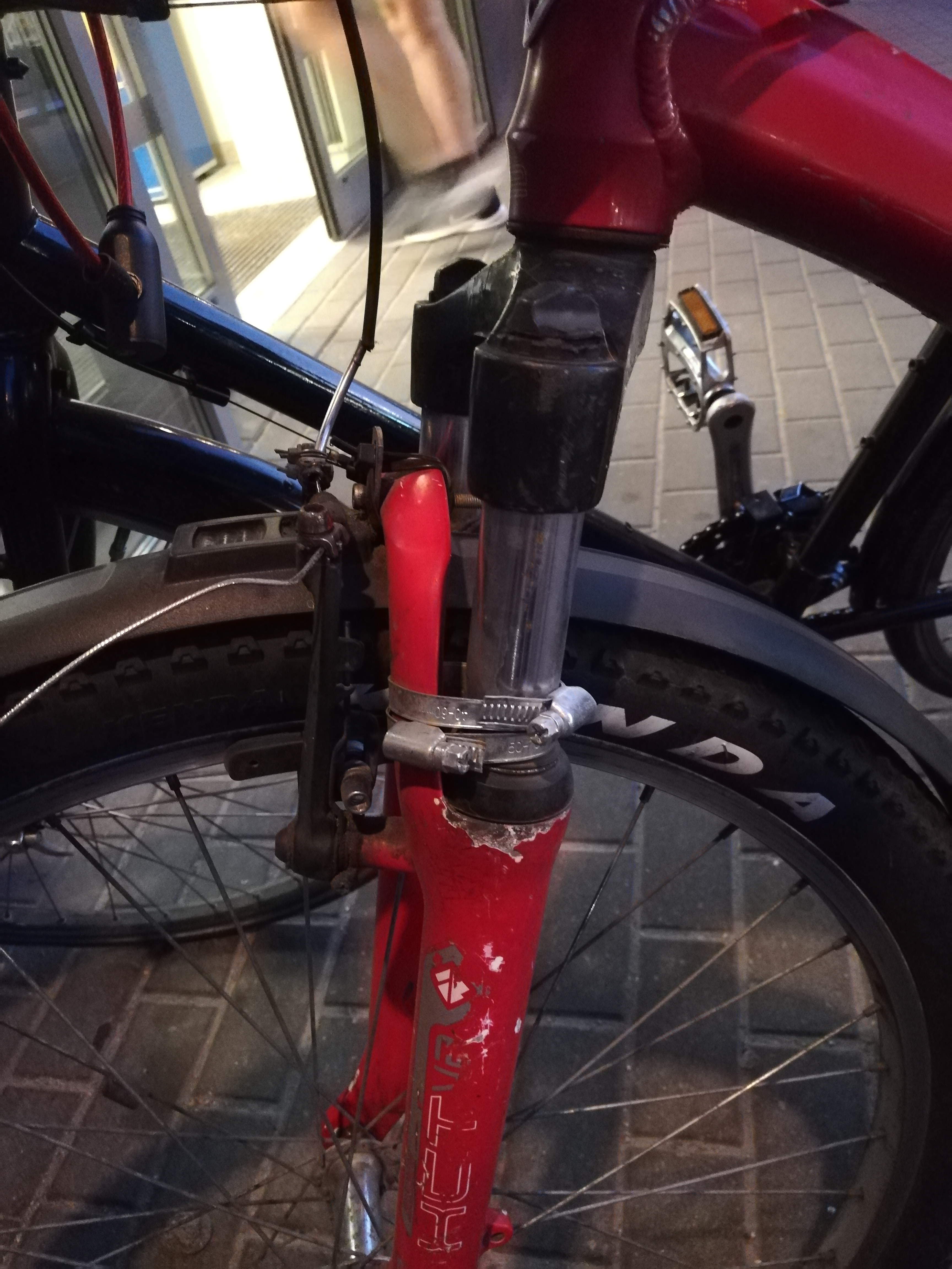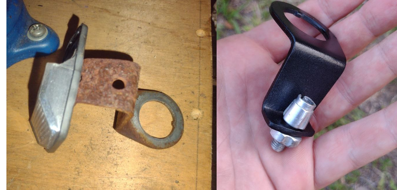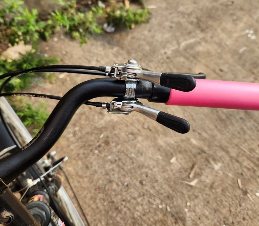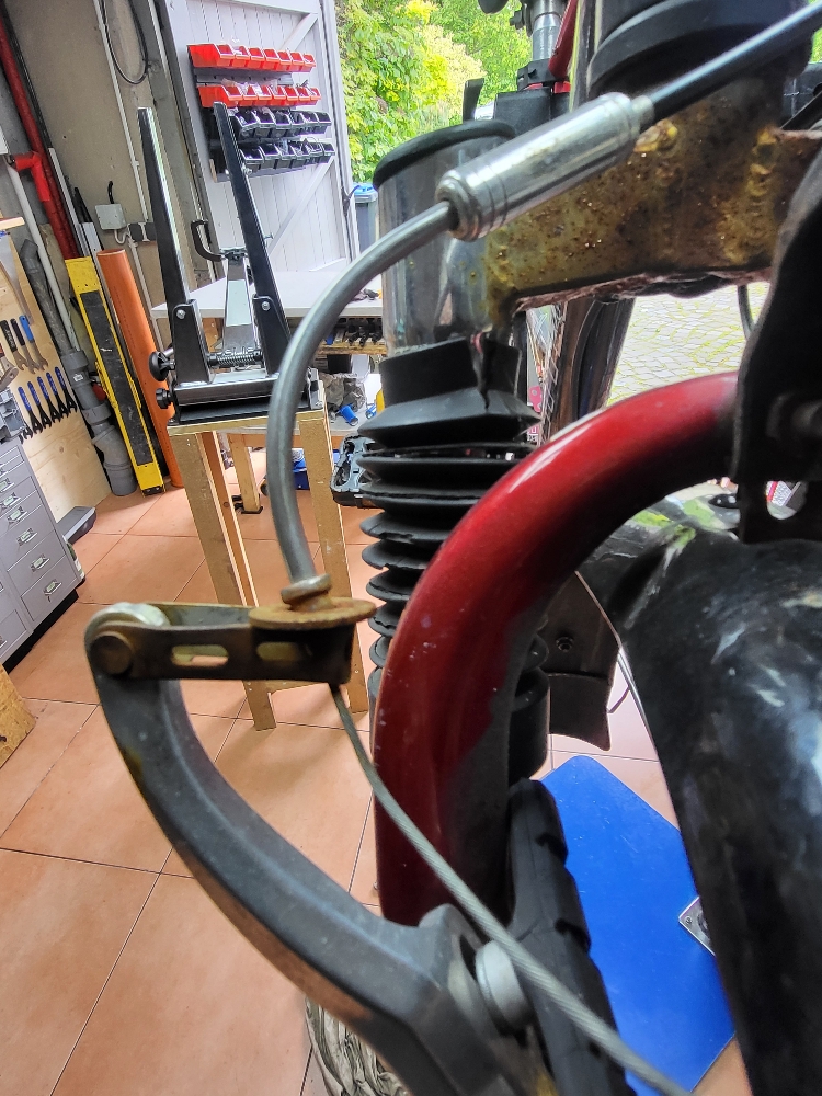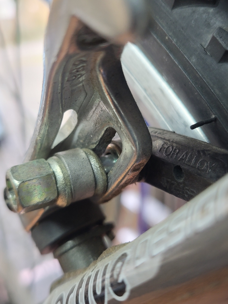The customer guessed where the brake cable should go in, guessed wrong, and instead of googling tried to make it work somehow by threading the cable through a washer.