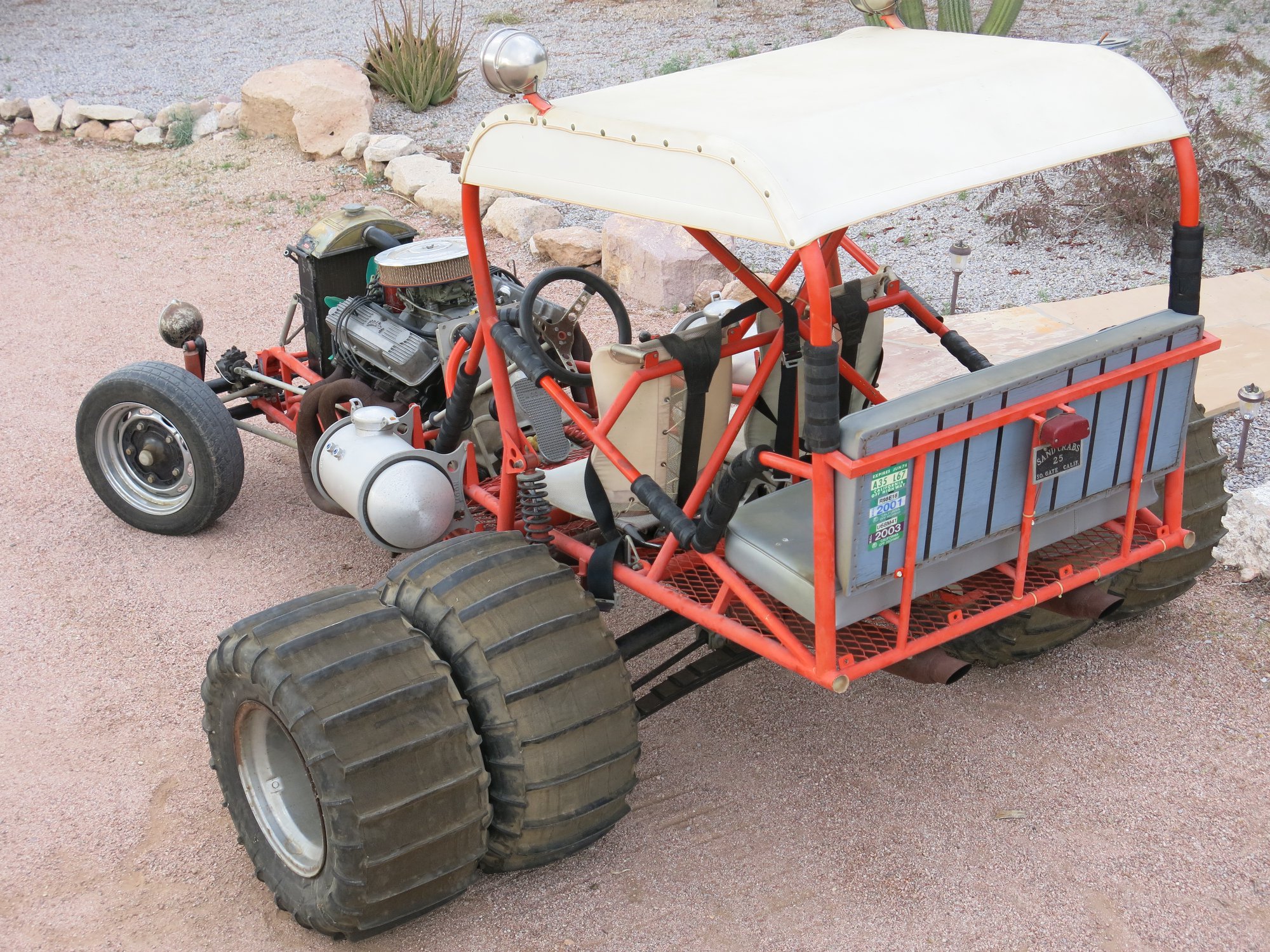The tarp is just one of those silver and black heavy duty poly tarps. Nothing fancy. The paracord is just regular real paracord. Very simple, but unbelievably durable.