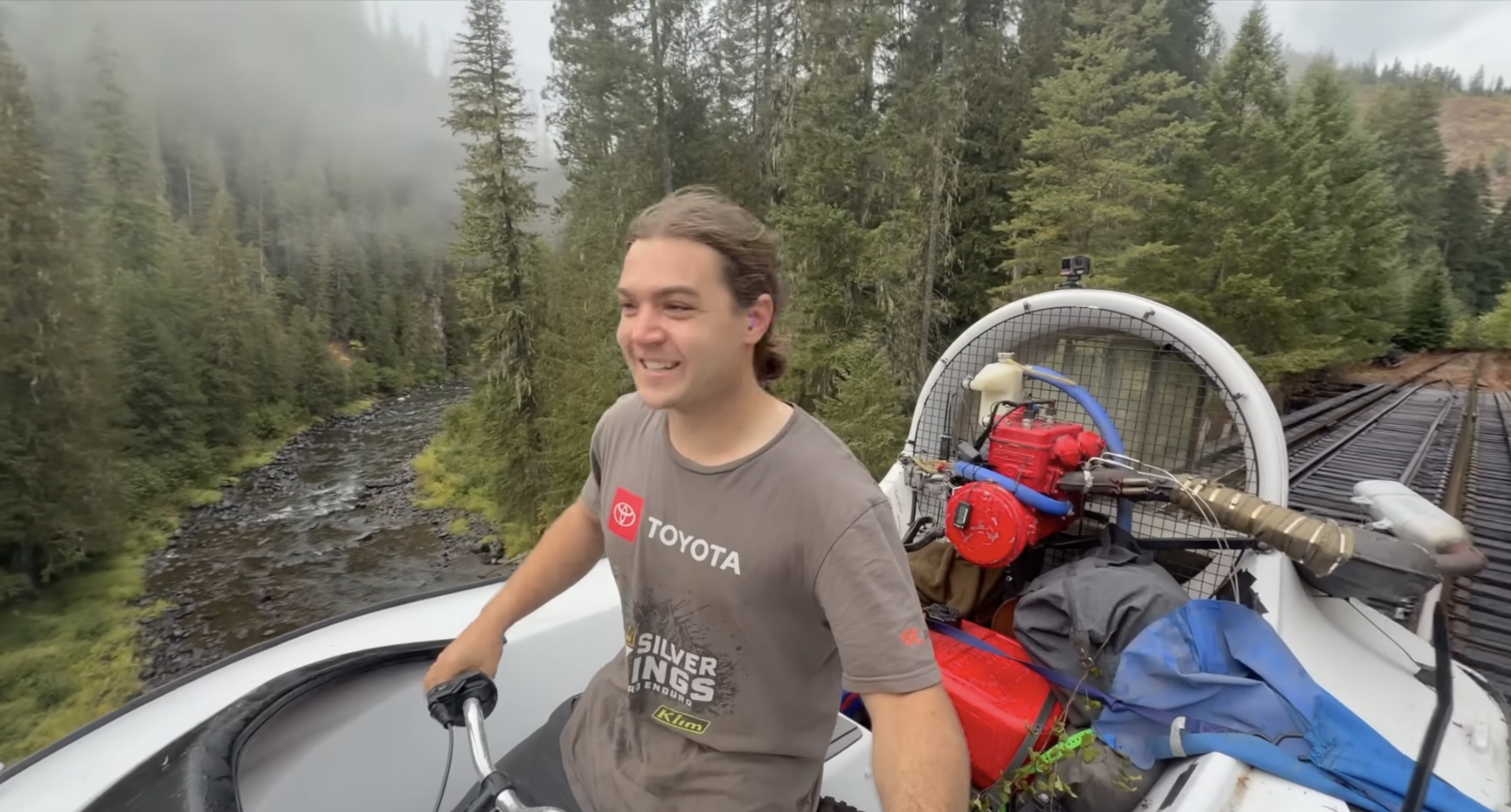 Two 8in logs, 10-11ft long anchoring the sides of the tarp, one each side.