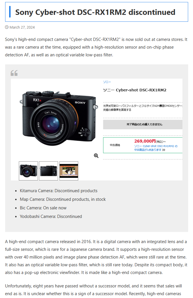 >>4405344No, he is correct. Tech upgrade, SOVL downgrade. Less grip is always better feeling for compact ILCs no matter how much the people putting wedding zooms on a vacation camera complain.