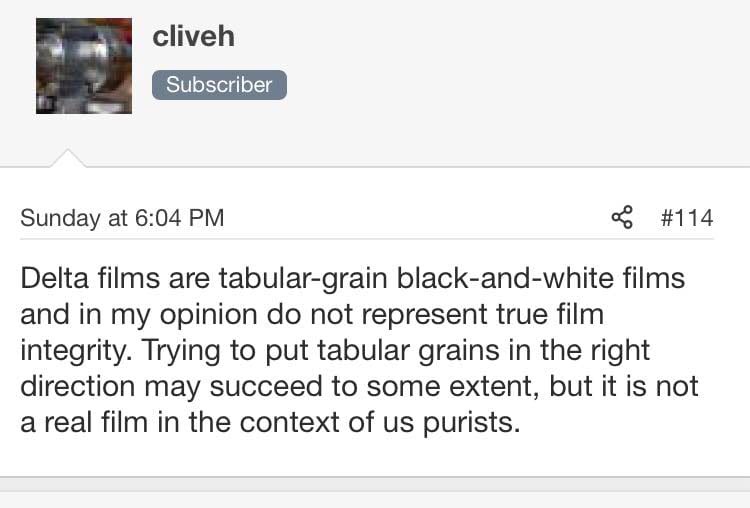 Delta 100 competes against Fuji Acros 100 and Tmax 100.