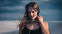 Wind blowing quite strong from the side so if the model wants hair on both sides of her head, she has tons of hair blowing over her face.
