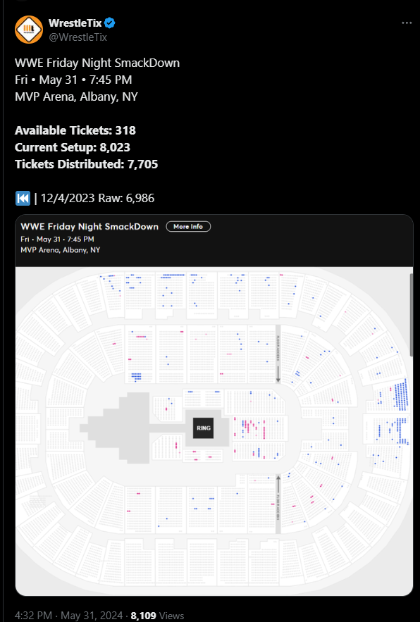 The bad news: They haven’t sold out yet and the arena actually seats 14,500, so we’re at a little over half sold. And that house show? It took place on Halloween; when ticket sales are generally very low anyway. So now the A show is barely beating a house show on a major holiday. Eek.