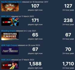 [Dead on Arrival Game News] AEW Fight Forever (0) is peaking now at 70 active users on Steam in the past 24 hours. The game hasn't had a collective hunnit active users on Steam since July. Can the game be recovered?