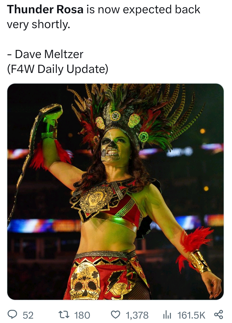>Mercedes Moné is no longer wearing a medical boot (ankle injury), with reports suggesting she will soon return to action for multiple promotions, including AEW.