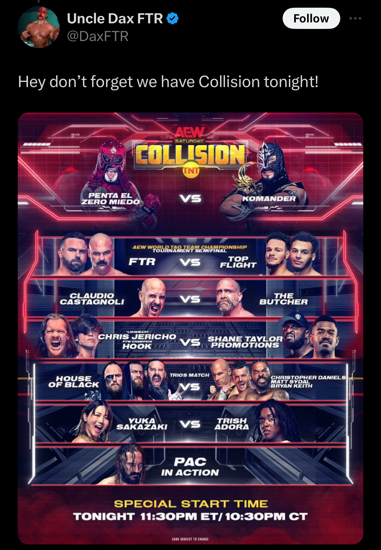 >Judgement Day (c) vs DIY vs New Catch Republic vs A-Town Down Under vs Awesome Truth vs The New Day