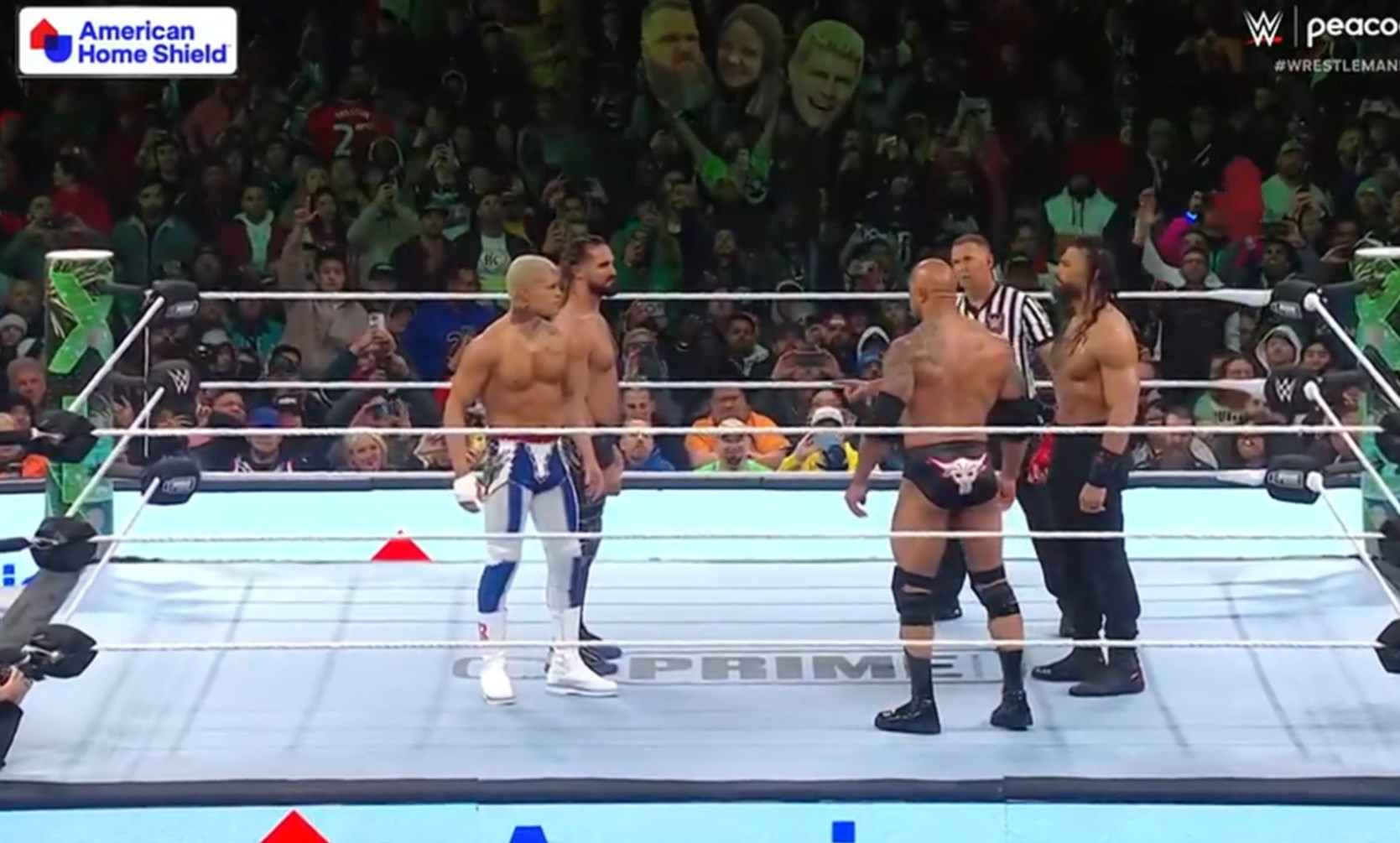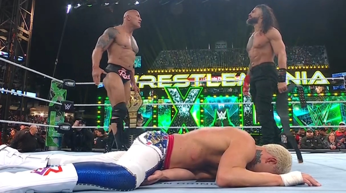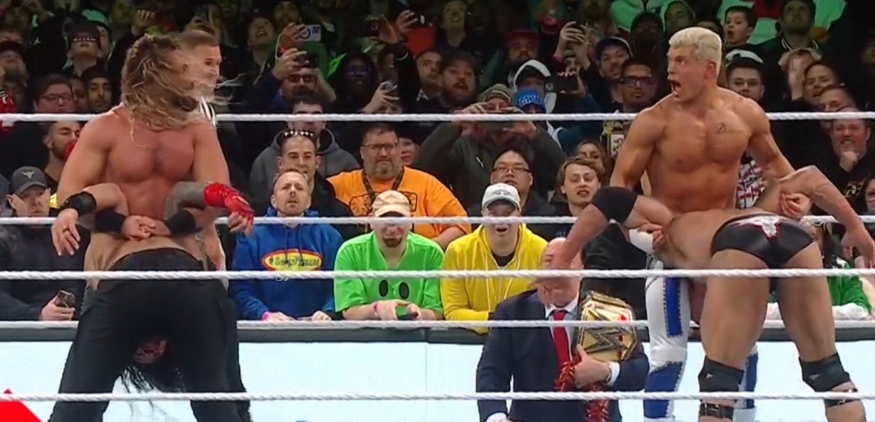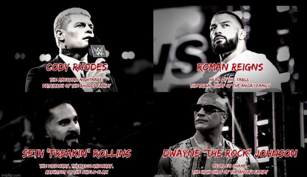>The Rock/Roman Reigns vs Seth Rollins/Cody Rhodes; winner decides the rules for Night 2's main event