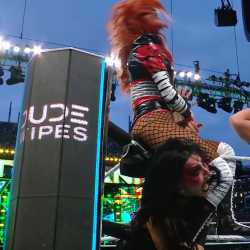 >DUDE WIPES flashing on the ringposts during the women's match