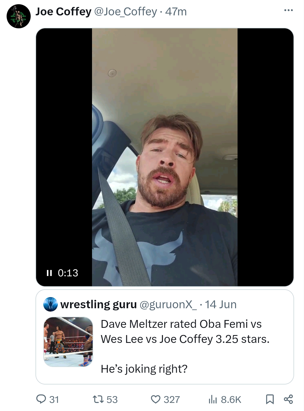 Seriously though how can he give something like this a 3.25 but some young bucks match where they stand in a circle fake kicking each other for thirty seconds and pretend to be dizzy and then fall over at the same time before kipping up and doing it again a 5.25?