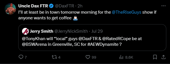 [16 / 2 / 1] 23KiB, 595x225, Capture.png View SameGoogleImgOpsiqdbSauceNAO Thread Reply Original Report Media View Same Google ImgOps iqdb SauceNAO Download Anonymous Wed 31 Jul 2024 03:58:47 No.15379813 View ViewReplyOriginalReport Quoted By: >>15379823 >>15379825 >>15379941 >>15379943 >>15379954 >>15380124 >>15380455 >>15383000 DAX NOT BOOKED FOR TOMORROW'S DYNAMITE IN HIS HOMETOWN