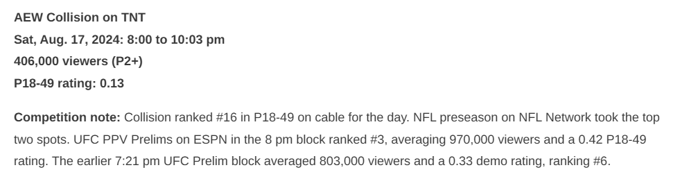 [36 / 3 / 1] 355KiB, 1100x619, COLLISION.png View SameGoogleImgOpsiqdbSauceNAO Thread Reply Original Report Media View Same Google ImgOps iqdb SauceNAO Download COLLISION RATINGS SKYROCKET. GIGA PLUMMET YOY Anonymous Tue 20 Aug 2024 15:35:46 No.15577713 View ViewReplyOriginalReport Quoted By: >>15577722 >>15577747 >>15577945 >>15577995 >>15578675 >>15578964 >LAST WEEK: 370,000 (0.11)>THIS WEEK: 406,000 (0.13)>LAST YEAR: 482,000 (0.17)