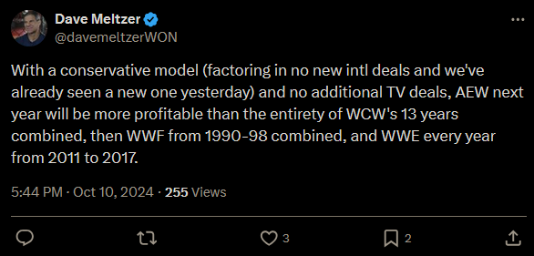 >AEW next year will be more profitable than WCW's 13 years combined