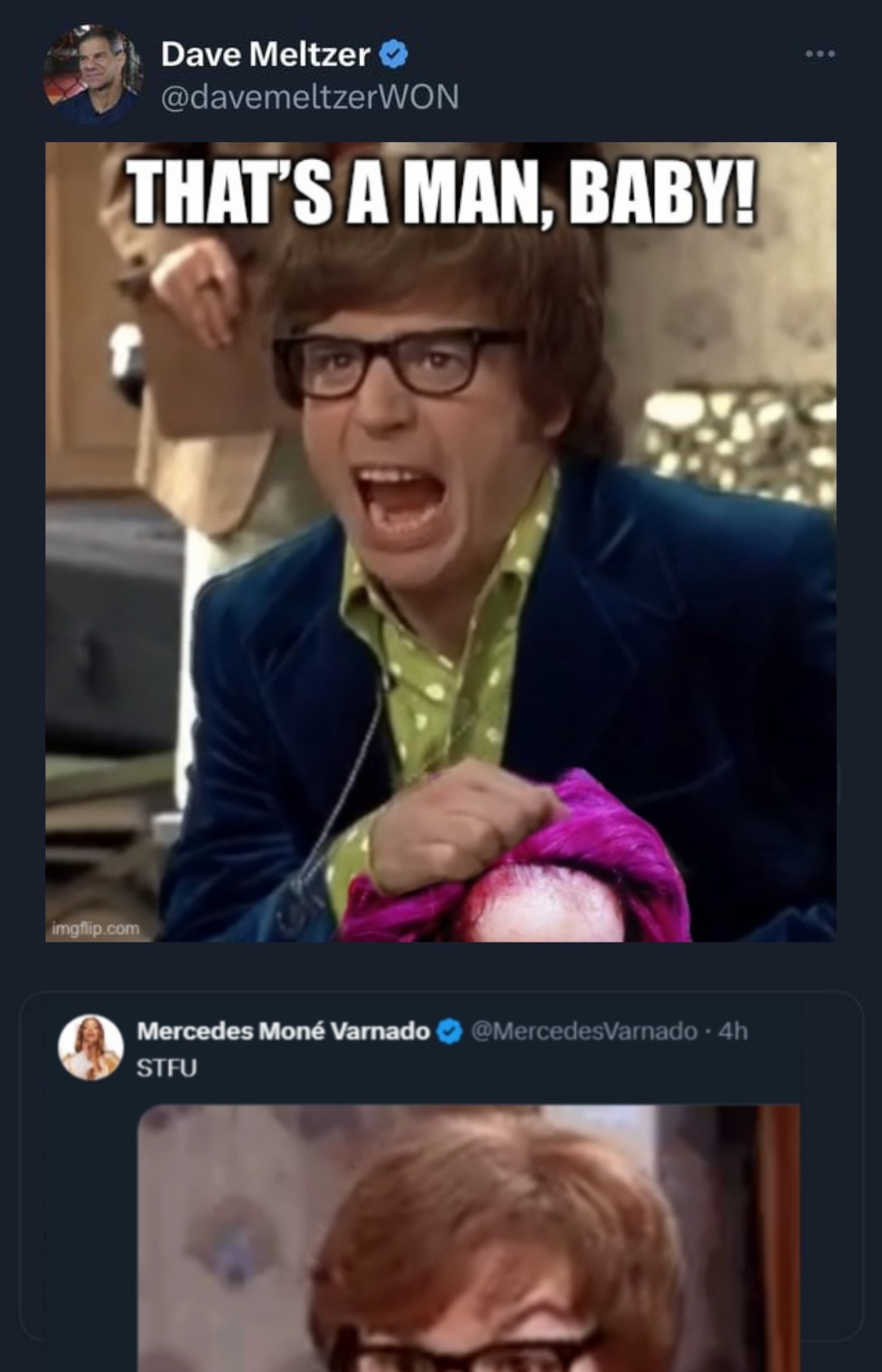 “And if Mercedes is the great worker that she often shows herself to be, she should take this as a challenge to go, ‘You know what, I’m gonna make this woman, I’m gonna be Ric Flair’. You wanna be Ric Flair? This is Ric Flair and Sting. That’s what it is. So go and make Sting.