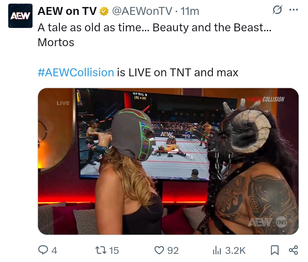 The International Championship Eliminator Tournament Continues... Saturday Night AEW Collision live TONIGHT! from The Theater at Virgin Hotels in Las Vegas, Nevada! 8/7pm CT on TNT & Streaming on MAX!>FTR vs. Undisputed Kingdom >"The Wrestler" Katsuyori Shibata vs. Ricochet in an International Championship Eliminator Tournament Match >Thunder Rosa vs. Megan Bayne >Mark Davis vs. Mark Briscoe in an International Championship Eliminator Tournament Match HOLONIGGAS RISE UP!!!
