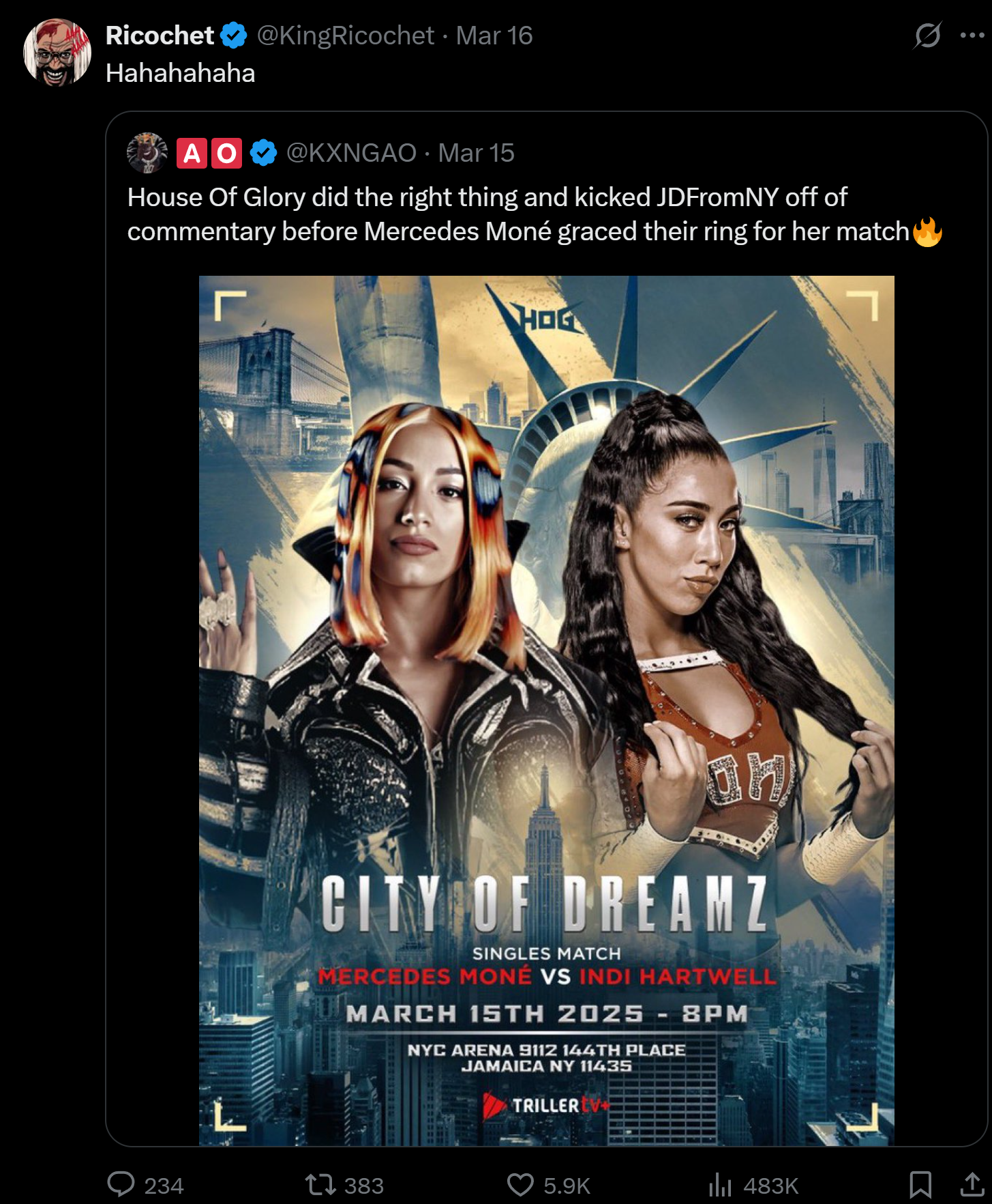 >>17334914Wow, clearly /pw/ is mostly full of zoomers without testosterone siding with this Joey fag. So JD is a POS for getting people send money to him to talk about wrestling, but Janela and his outlaw mudshow garbage wrestling is not?