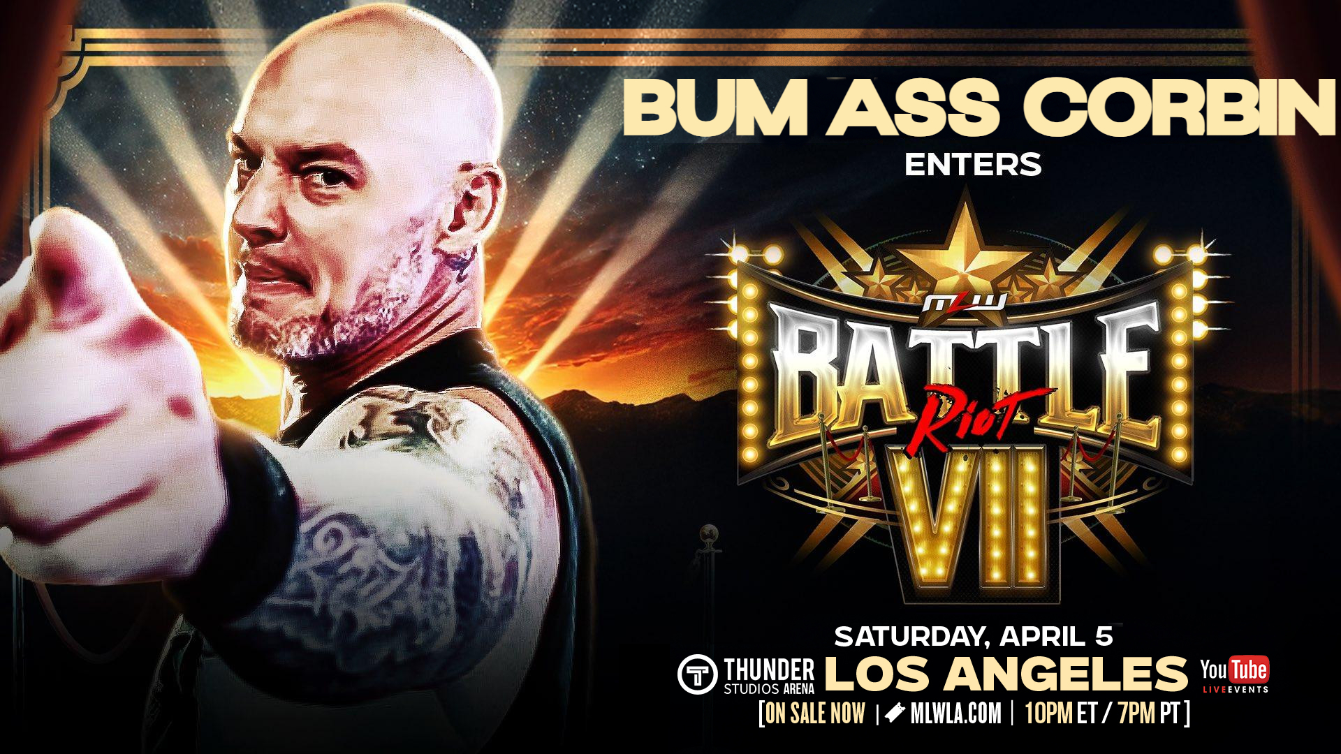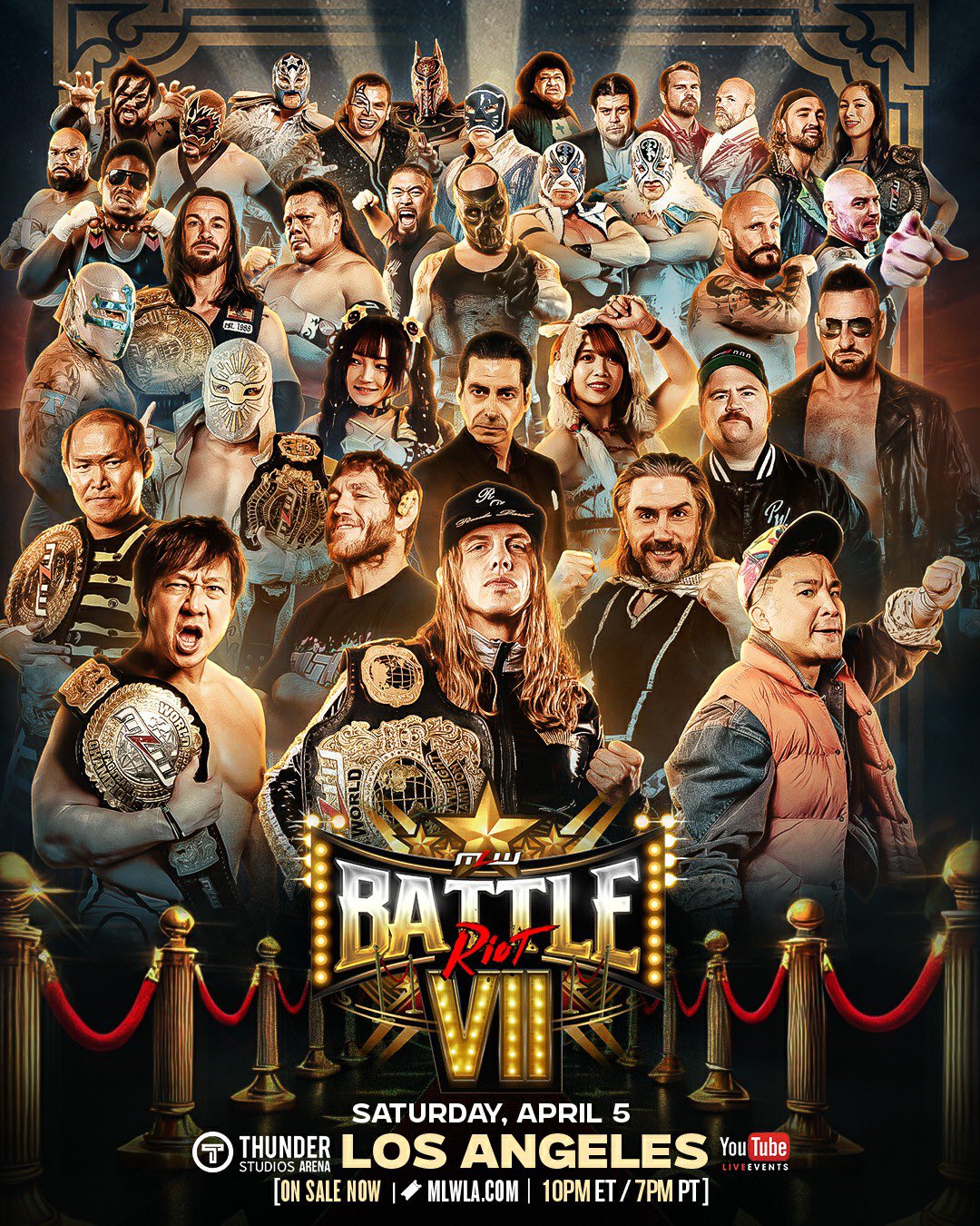 >Matt Riddle (c) vs. CW Anderson vs. Atlantis vs. Satoshi Kojima vs. Paul London vs. Blue Panther vs. Ultimo Guerrero vs. Bobby Fish vs. Okumura vs. Virus vs. Jesus Rodriguez vs. Matthew Justice vs. KUSHIDA vs. Shane Haste vs. Hechicero vs. Magnus vs. Esfinge vs. Barbaro Cavernario vs. Bishop Dyer vs. Mr. Thomas vs. Anthony Greene vs. Star Jr. vs. Donovan Dijak vs. Tom Lawlor vs. Brett Ryan Gosselin vs. Atlantis Jr. vs. Alex Kane vs. Brock Anderson vs. Juicy Finau vs. Ikuro Kwon vs. Paul Walter Hauser vs. TBA vs. TBA vs. TBA vs. TBA vs. TBA vs. TBA vs. TBA vs. TBA vs. TBA in a 40 man Battle Riot match for the MLW World Heavyweight title