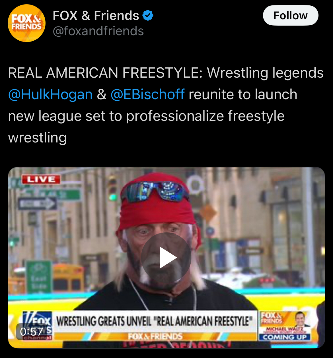>>17572751I enjoy freestyle wrestling and I've even competed in it. So yes, I will be watching. Hopefully Hogan and Bischoff will add some level of gimmicks, storytelling, etc. The matches can be legit but let the wrestlers play it up and act like there is real heat even when there isn't any. This does happen in both UFC and boxing but only sporadically based on those involved and it's not really a promotion level trend. Hogan and Bisch are onto something here, I think.