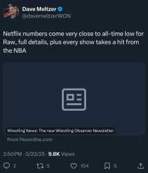 AEW gets about the same viewership (more or less, 500k vs 444k) on the APP because people buy CABLE not for wrestling but for SPORTS (mostly).