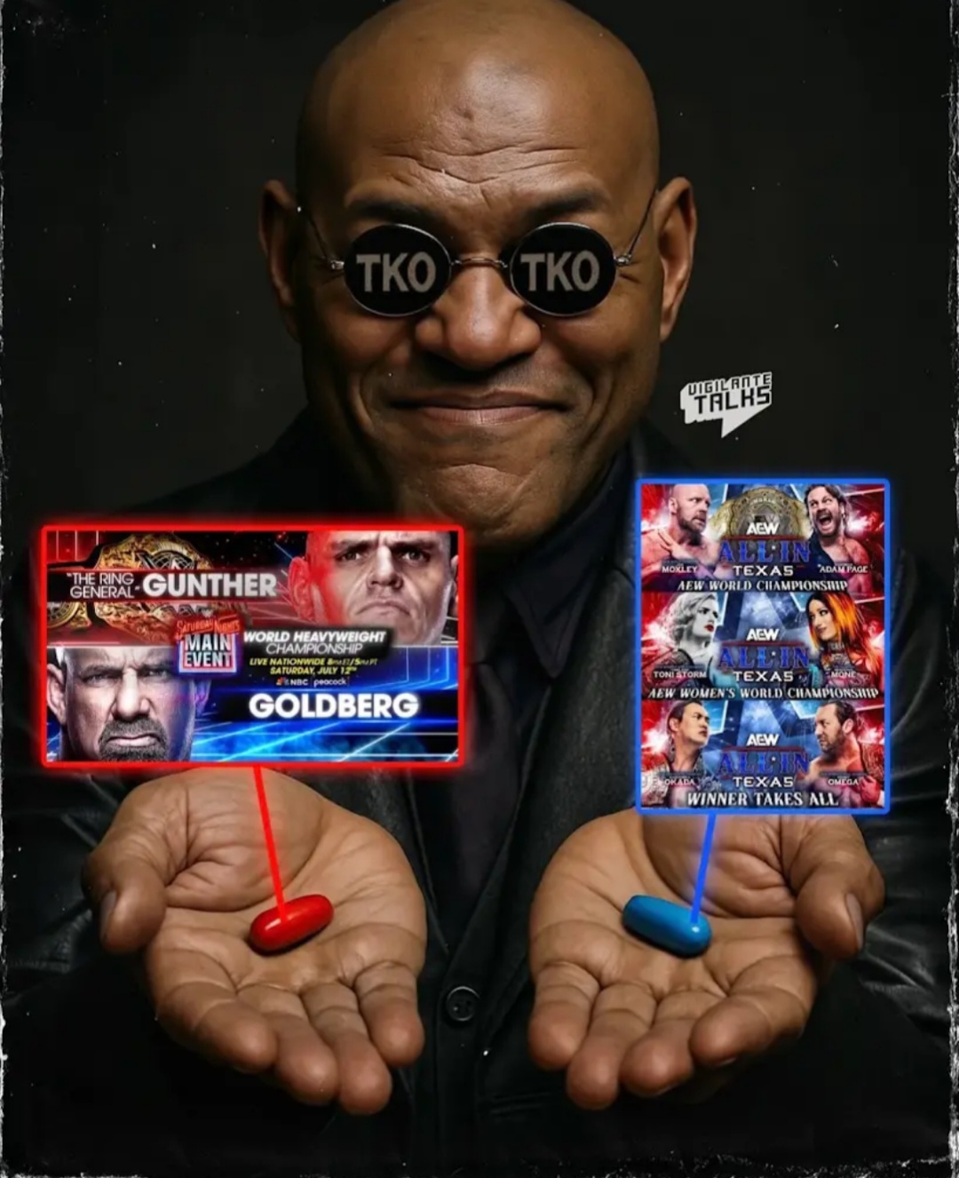 This All In card looks equally as bleak because we're getting Moxley vs Page AGAIN (a feud that already ran it's course 2 years ago and was okay at best), Mercedes exercising her creative control and winning her umpteenth belt that she'll rarely defend, plus washed up, broken down Omega vs barely ever tries anymore Okada. Of course, Meltzer will give each match 8.5 Shiny Stars because he watches every AEW show with one hand on his limp dick.
