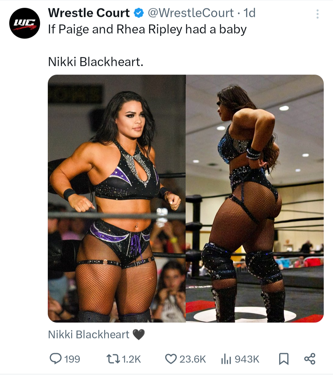 [17 / 3 / 1] 1MiB, 1080x1221, Nikki.png View SameGoogleImgOpsiqdbSauceNAO Thread Reply Original Report Media View Same Google ImgOps iqdb SauceNAO Download Anonymous Fri 20 Jun 2025 14:26:05 No.18045337 View ViewReplyOriginalReport Quoted By: >>18045338 >>18045351 >>18045777 Is Nikki Blackheart ready for the Big Time?