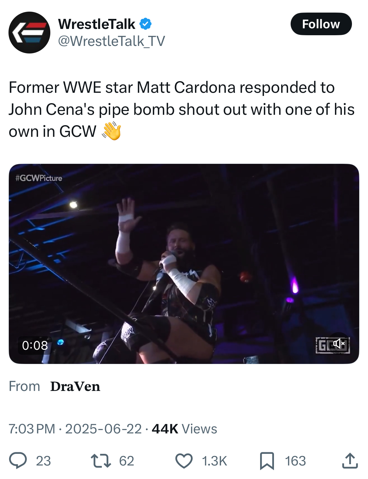 Now he's got a hint of attention from WWE, you bet your ass he's gonna mention this every chance he gets. "Oh hey, cena mentioned me on TV, why am I not involved in the storyline yet?"