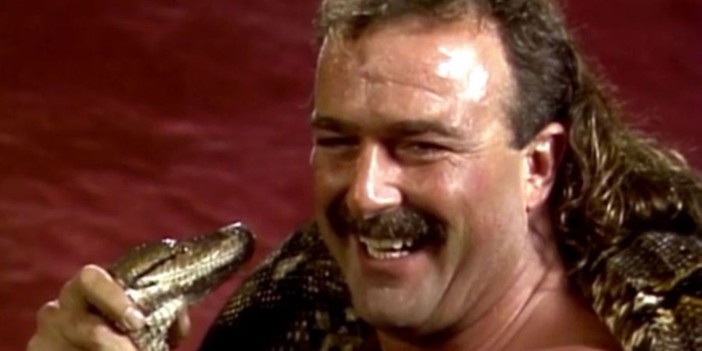 >Austin gets 72 >Jake gets 81 Stone Cold goes for the stunner, but it was too early for that. Jake the snake uses the opportunity to pull a cobra from his tights and latch it to Steve Austin's face! Luckily this cobra is devenomized but it still has teeth.