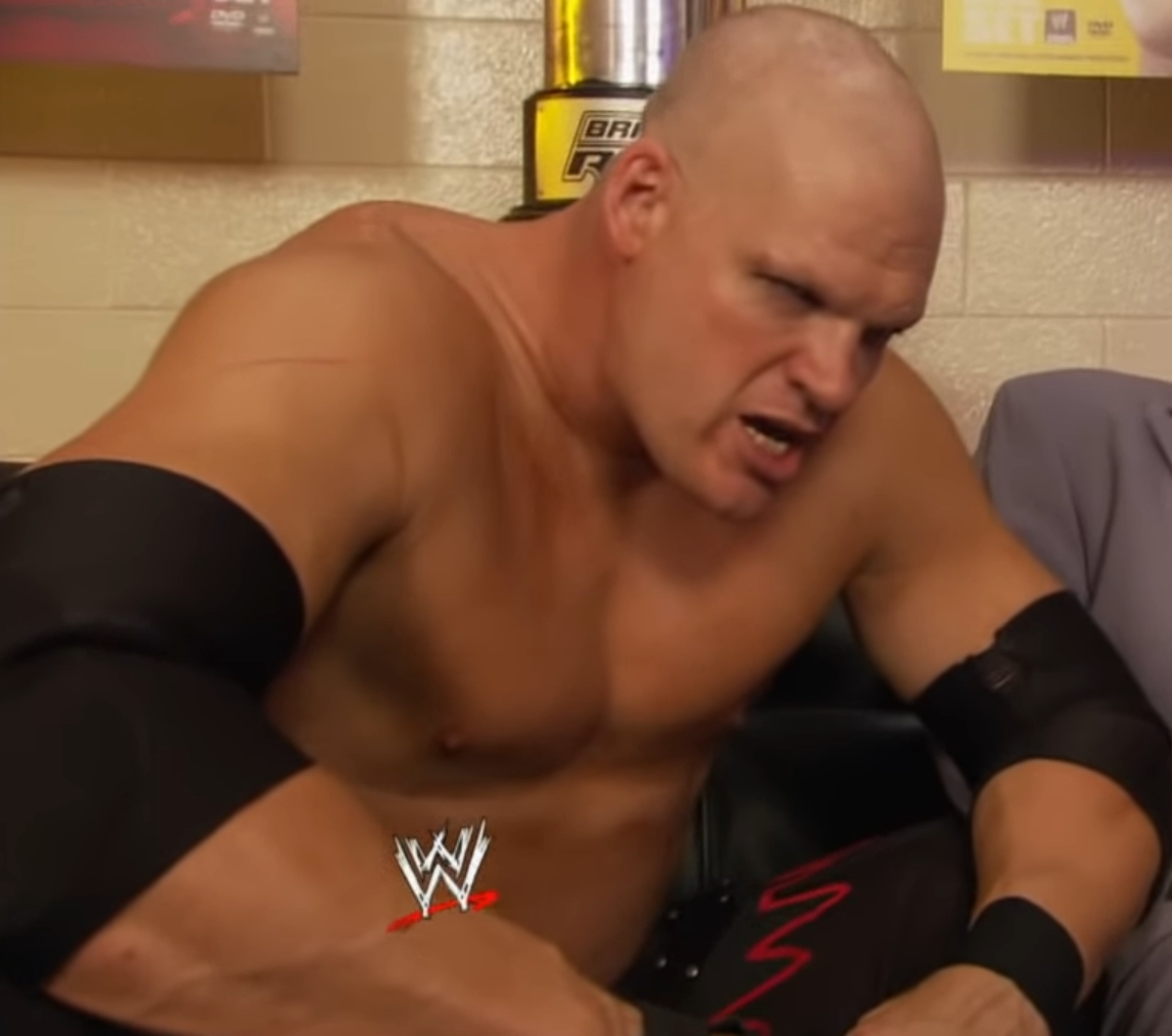Rasslor manages to avoid the flying elbowdrop, causing Kane to crash hard into the canvas