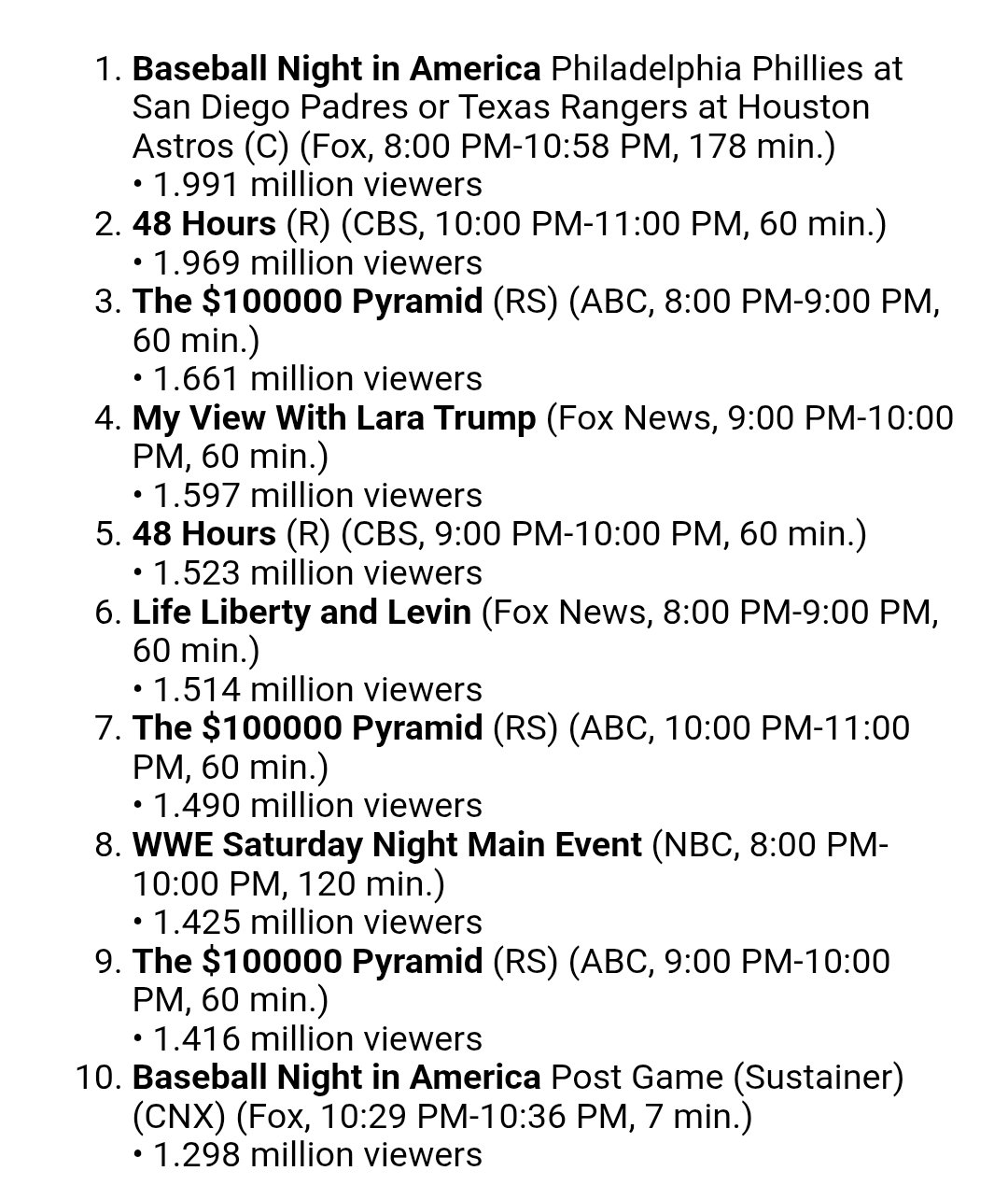 8th on Network TV on NBC, no less. An unmitigated DISASTER. Seems like the viewing audience was watching AEW: All In instead.