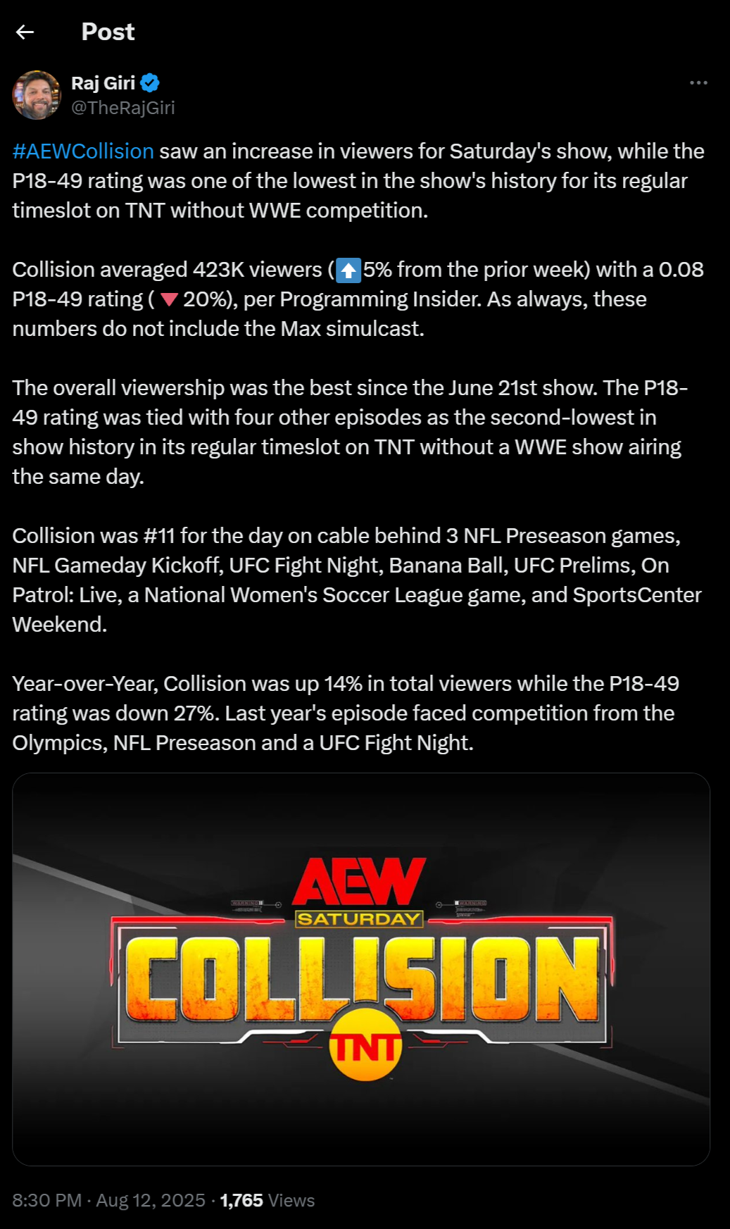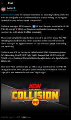 Collision just had one of their worst demos of all time and were 11th on cable behind women's soccer and on patrol live