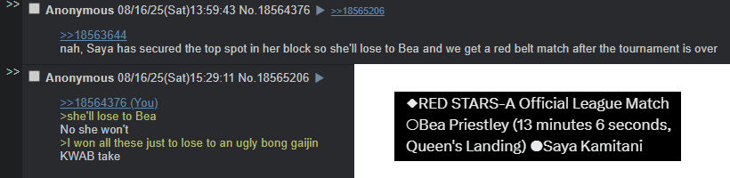 >Saori Anou vs Winner of Suzu/Bozilla