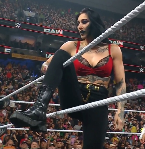 Rhea Ripley came out wearing just her bra