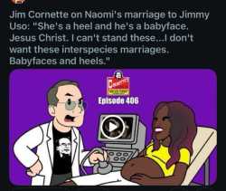 jim cornette (cuckold), has outed himself as a racist again in a recent video about Naomi's pregnancy
