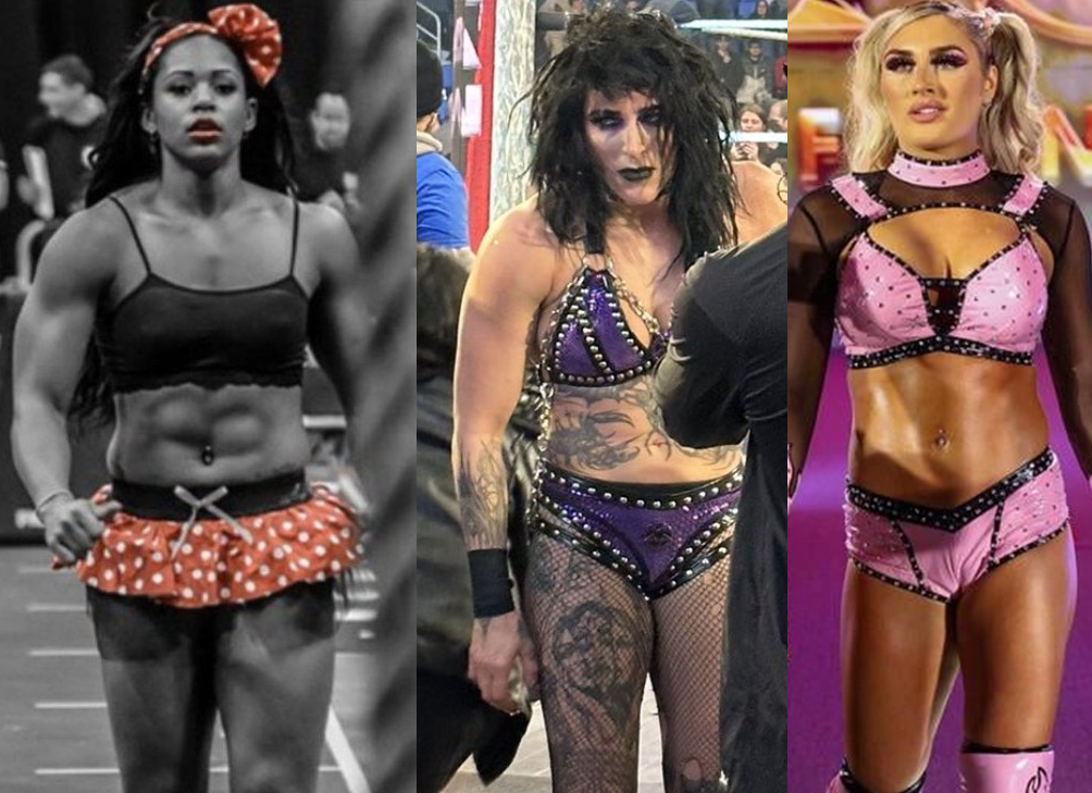 bliss and charles are fucking around in the midcard doing tag shit to rehab charles' image, giulia flopped, bianca is kwabbed, and chelsea refuses to not job. this leaves us with jade (who is complete trash) and nia (again).