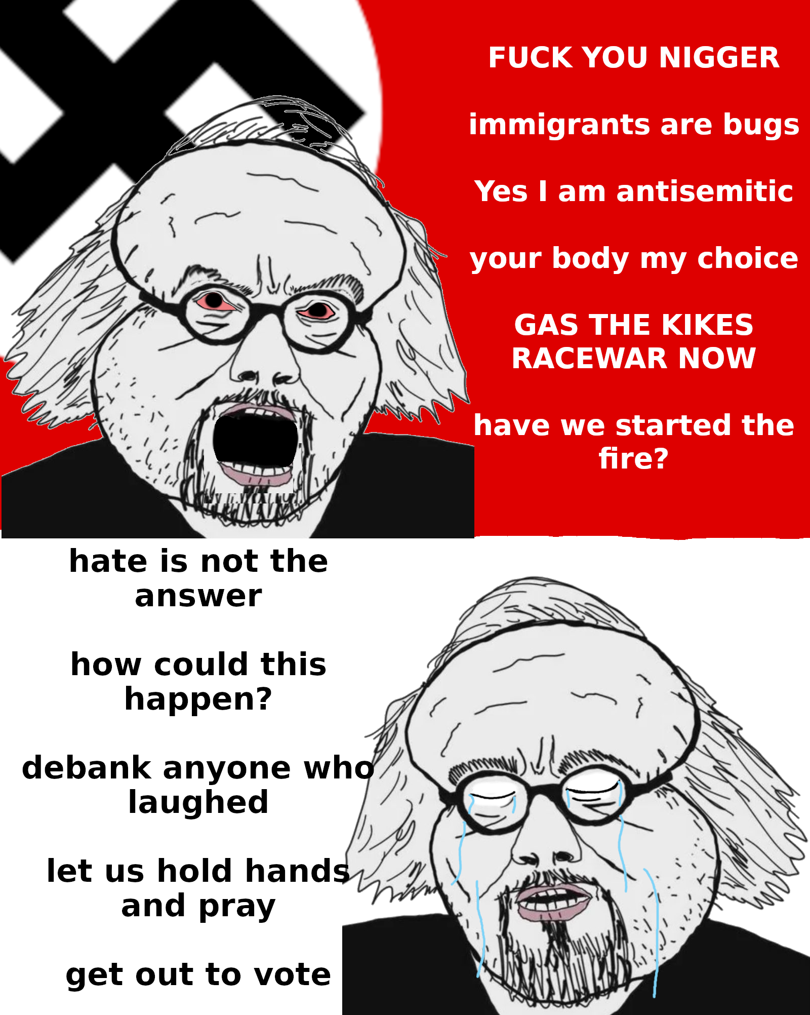 >Was nobody censored during plandemic or after the fake insurrection (patriotic, legal protest encouraged by the declaration of Independence where magnetic doors were opened from inside and the commie popular trial led to dozens of hours of video destroyed and some faggot purge like in Dark Knight Rises)?