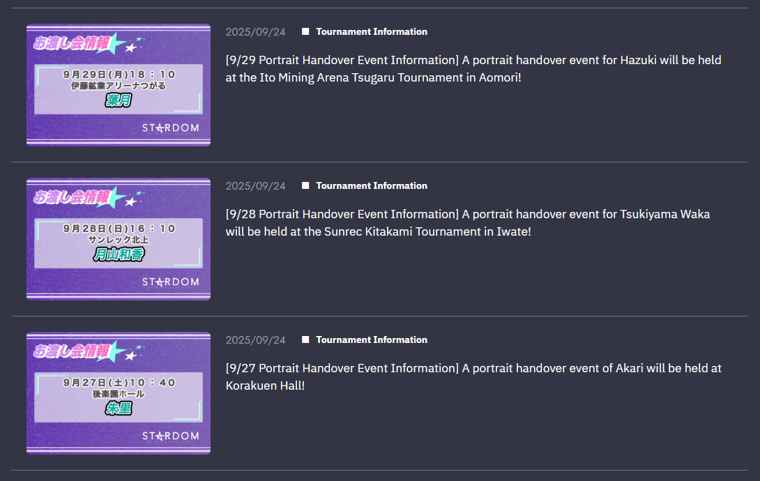 >other matches tba https://wwr-stardom.com/event/20250927_korakuen/