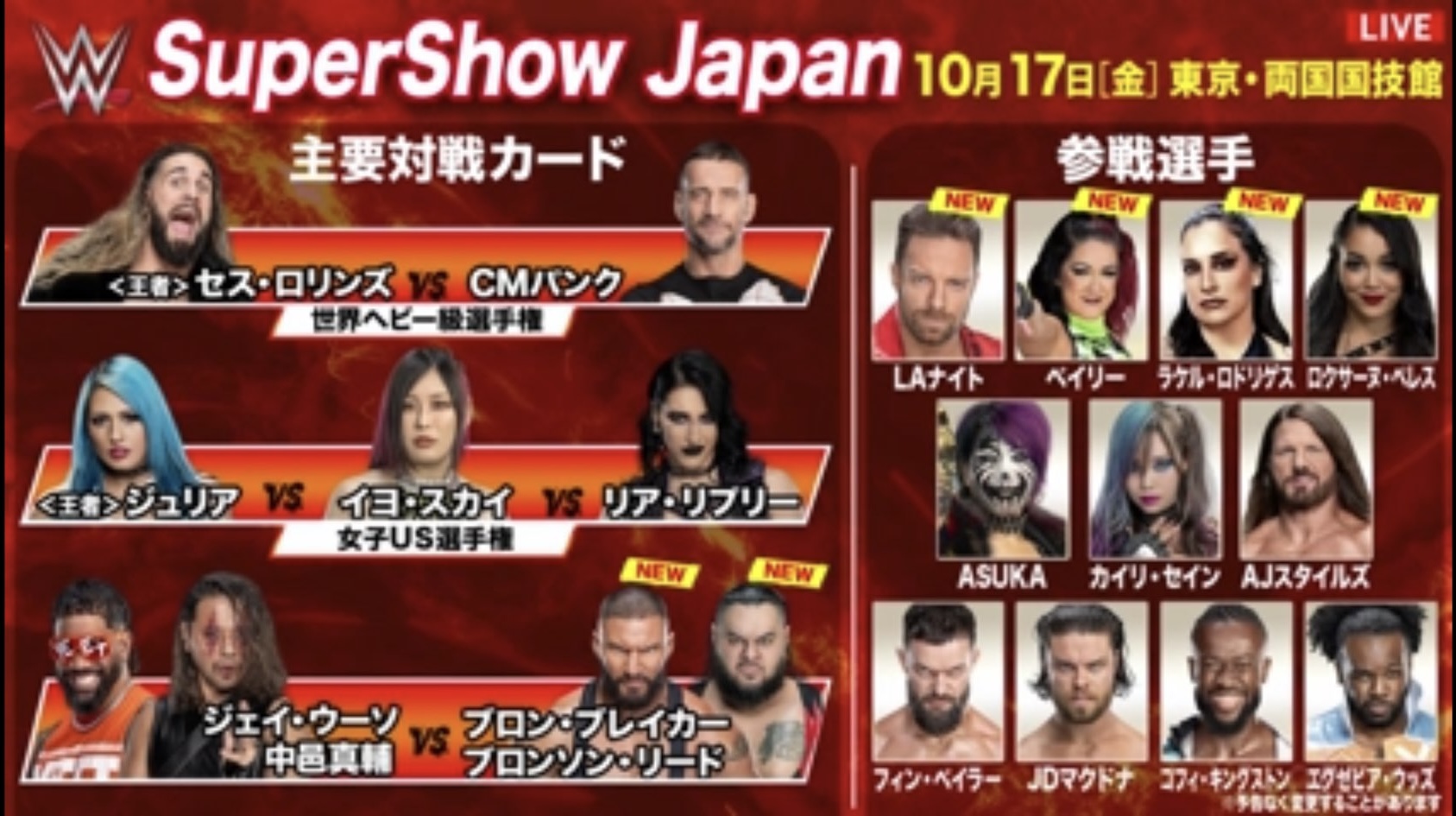 Asuka, Kairi, IYO and Giulia have been confirmed for WWE's Supershow Japan in October.