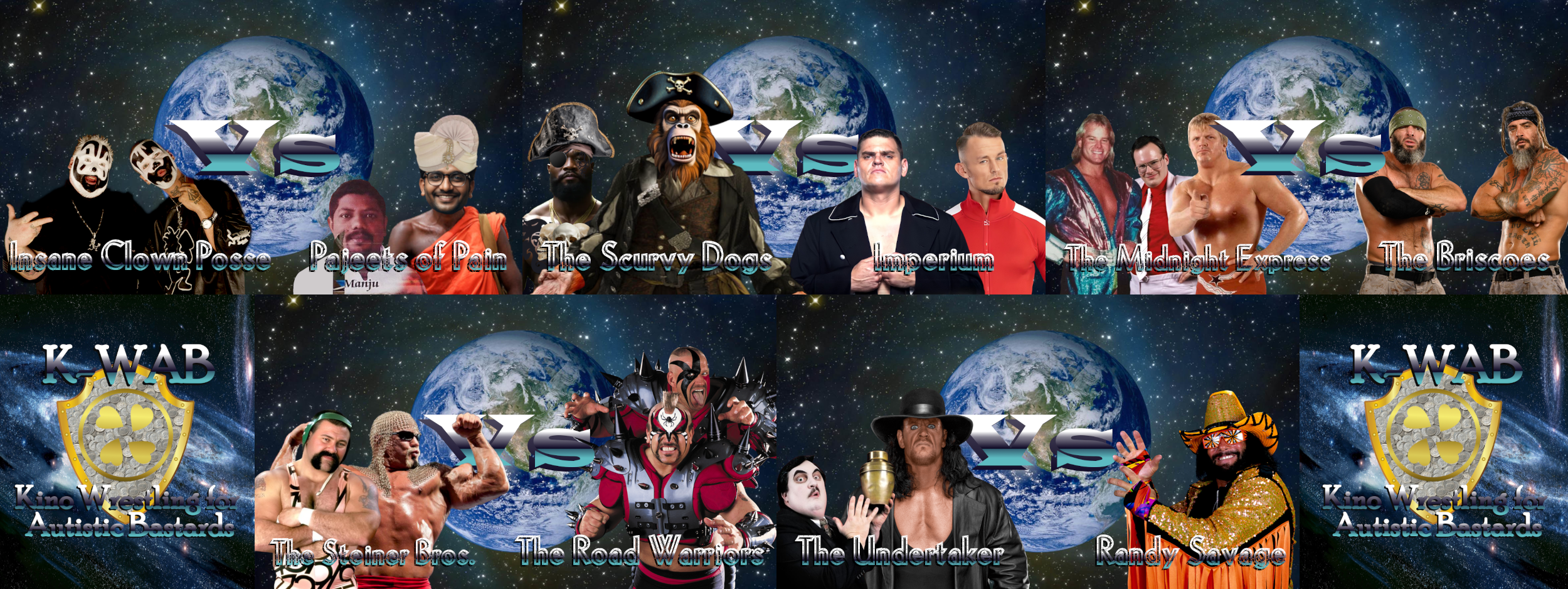 Tomorrow night, we got a banger of a show for all you autistic bastards! We got eight of the finest tag teams of all time duking it out for a shot at becoming the first K-WAB World Tag Team Champions. Plus we got The UAMFBN himself against a debuting Randy "Macho Man" Savage. Here is the full card: