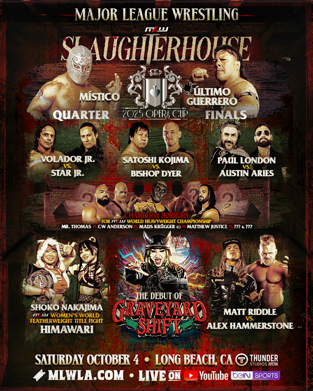 >MLW World Heavyweight Title Chamber Of Horrors Match: Mads Krule Krügger (c) vs. CW Anderson vs. Matthew Justice vs. Mr. Thomas vs. TBA vs. TBA