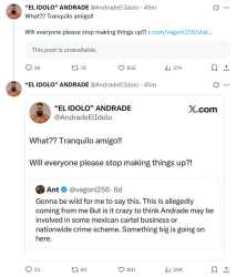 >>19107926>Andrade or AEW actually making a statement about his status.>AEWTony already answered something about him in some media call or PR thing or whatever. The way he phrased it was about the equivalent of when he talks about wrestlers who are still in AEW but are clearly leaving. AEW is trying to memoryhole the entire thing and act like it never happened right now