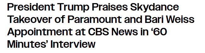 >And they are illegal...why, exactly?The Clayton Antitrust Act specifically prevents corporations like Skydance from acquiring Paramount, Warner Bros, Tiktok, etc, which is what is happening.